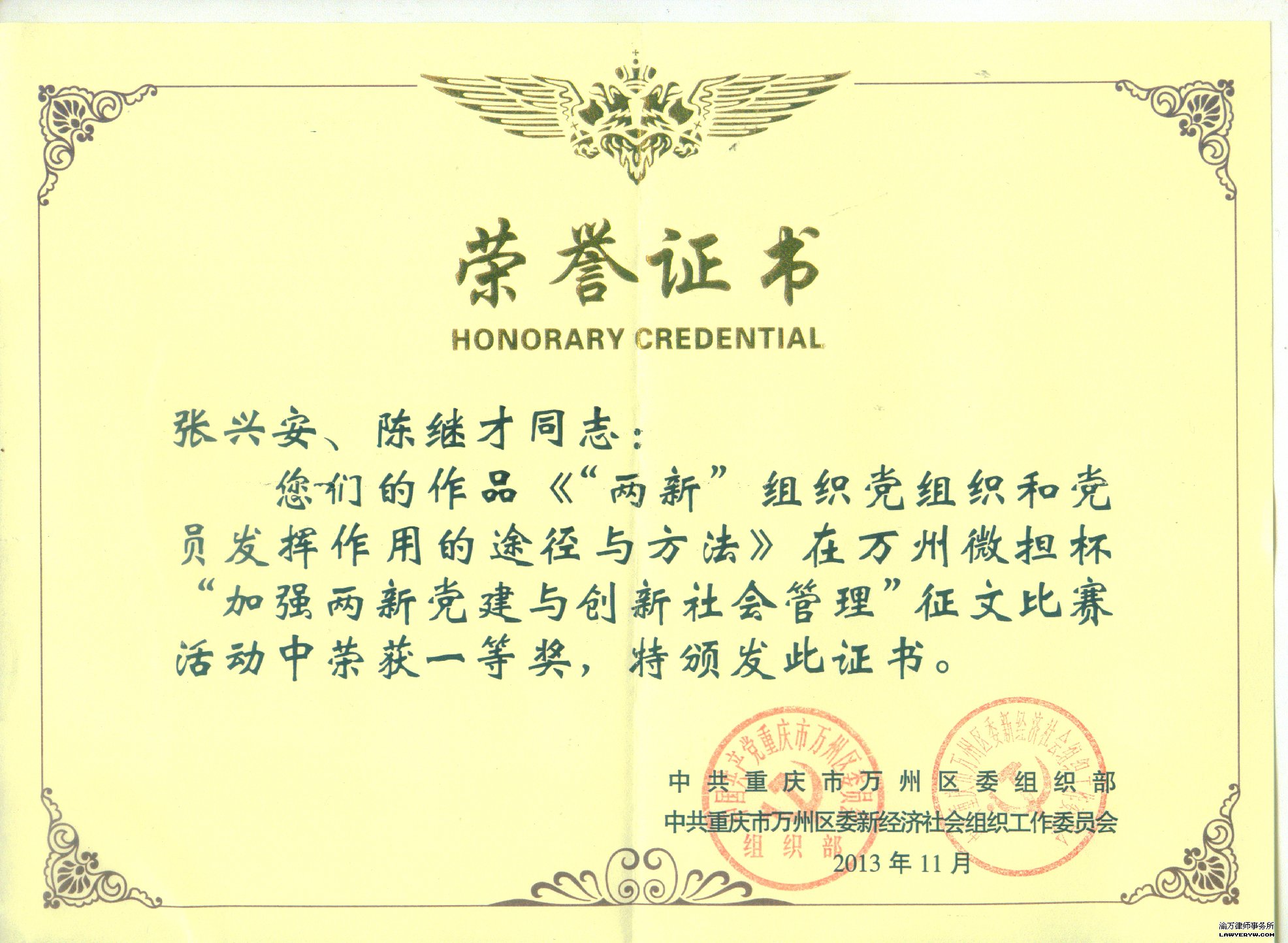 2005年6月,渝万律师事务所被中华全国律师协会授予“全国优秀律
